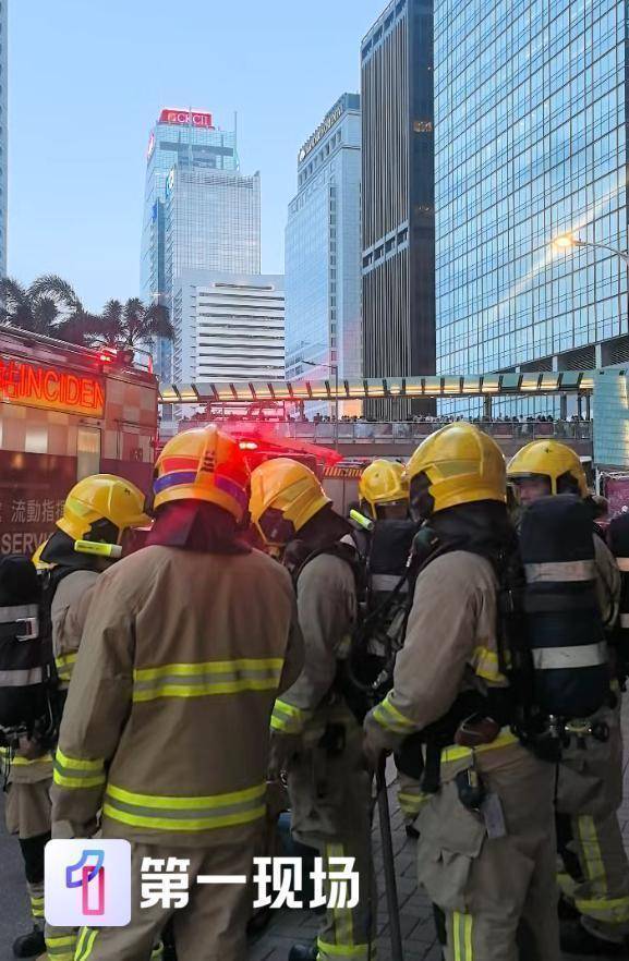 第一现场驻香港记者了解到,下午5点50分,在港铁中环站A出口外,可以看到有多量消防车、警车、救护车在现场,有多名穿戴好救援设备的消防员待命。