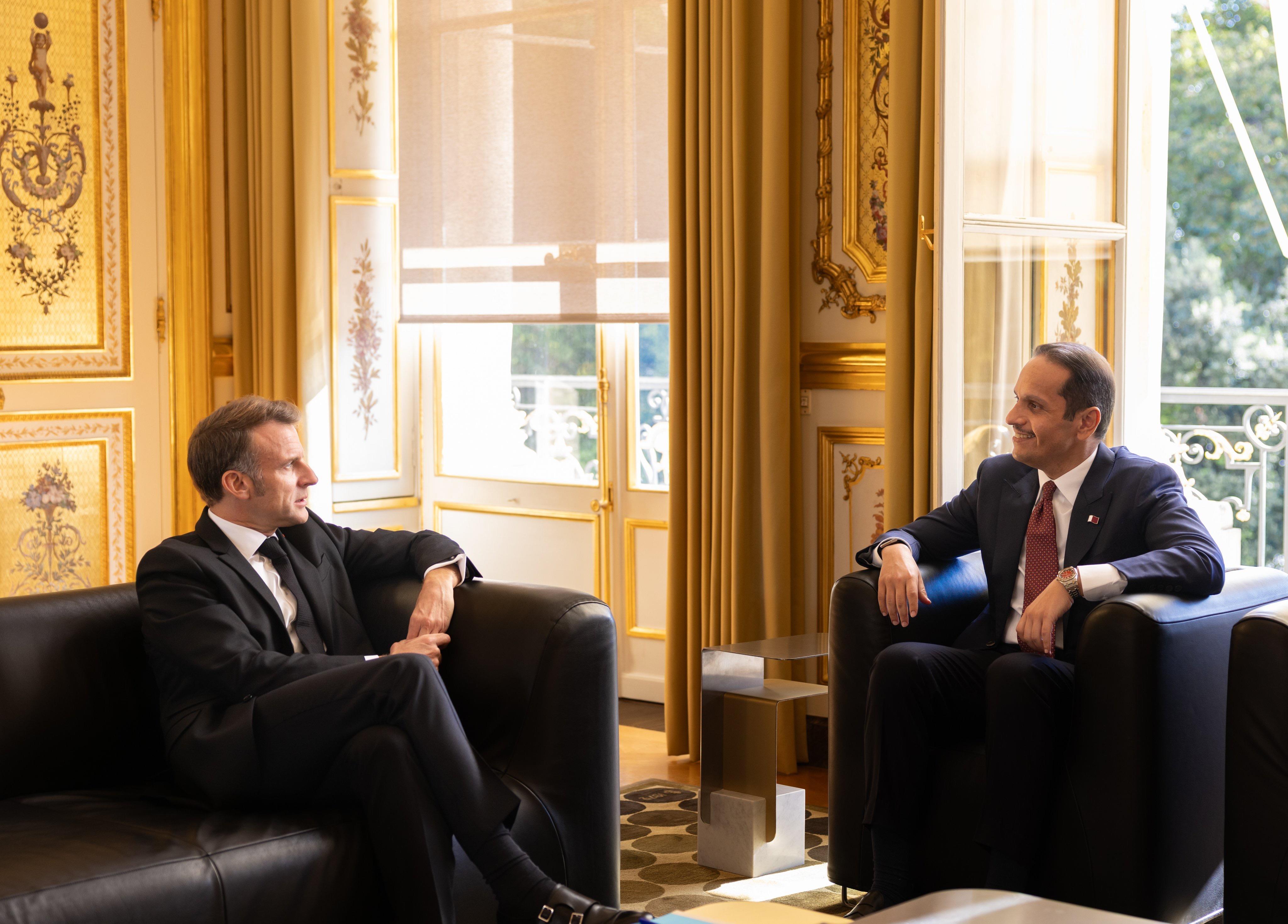 当地时间10月9日,法国总统马克龙在首都巴黎与来访的卡塔尔首相兼外交大臣穆罕默德举行会谈,重点就加沙局势的最新进展以及加沙停火第一阶段协议的情况进行了讨论。